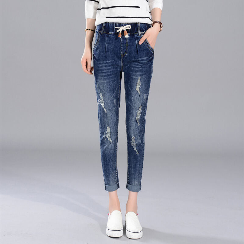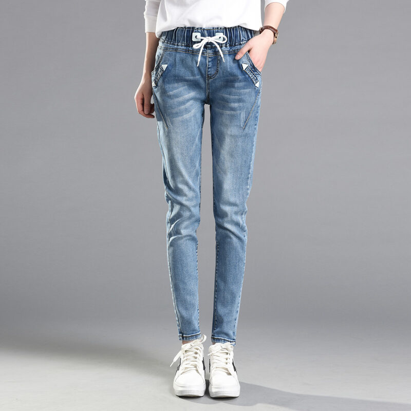 Elastic Waist High Waist Jeans Women's Spring and Autumn Korean Style Skinny Pants Loose Slimming Pants 2021 New Harlan Trousers